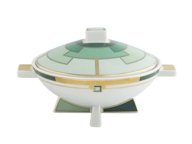 Emerald Sugar Bowl. During the golden age of the Art Deco movement, metals and precious stones were commonly associated with geometric motifs, reflecting an opulence inherent in artistic creation.