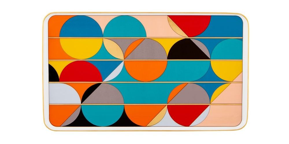 Futurismo designed by Vista Alegre is a rectangular tray made of porcelain available in two dimensions. The elements are hand painted enriched with gold details. The Futurismo collection is a contemporary reinterpretation of the pioneering movement of all modern movements, celebrating progress and marking a period of reinvention of artistic languages
